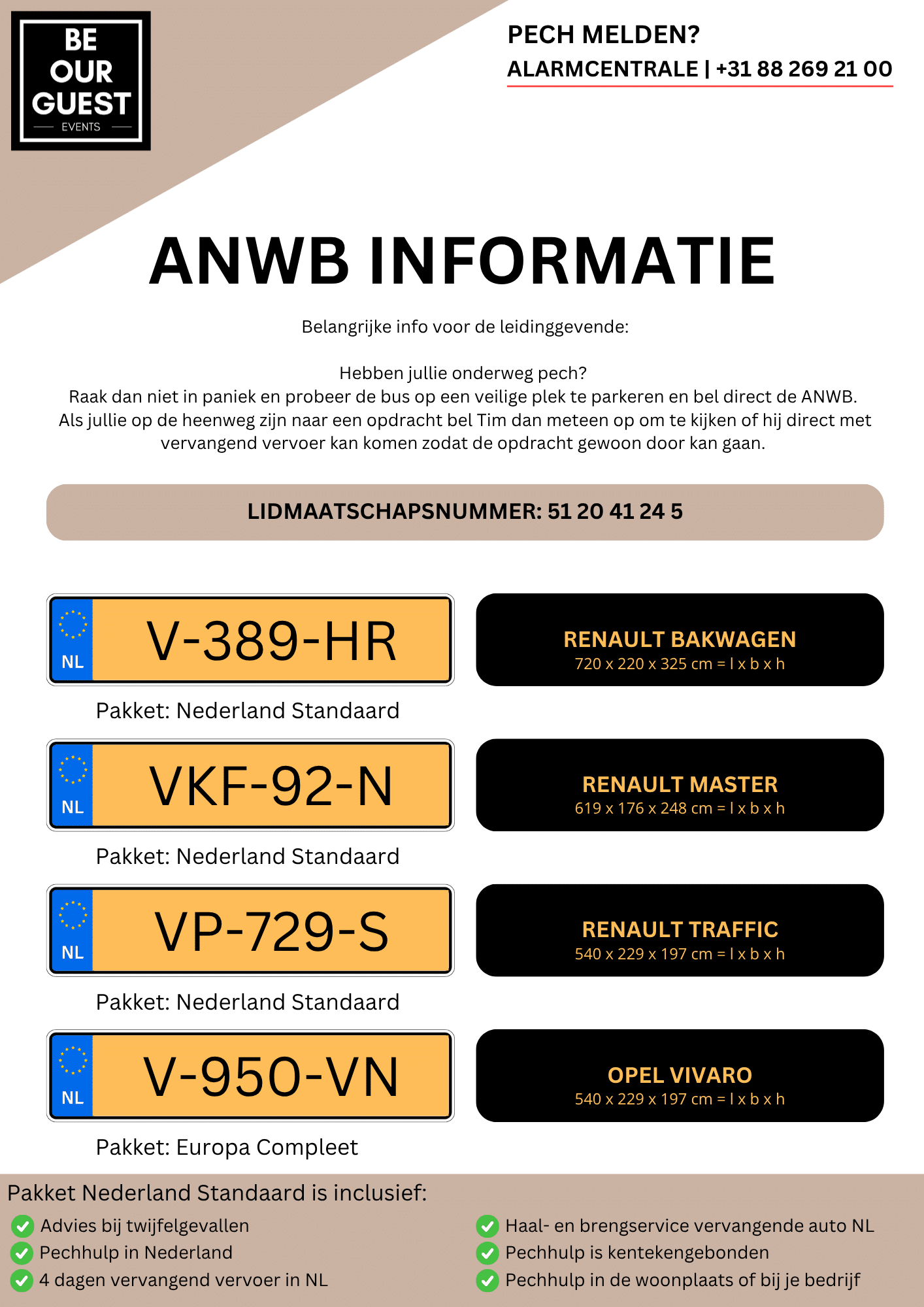 - 📞 Rufen Sie immer den ANWB und (falls nötig) Tim an.