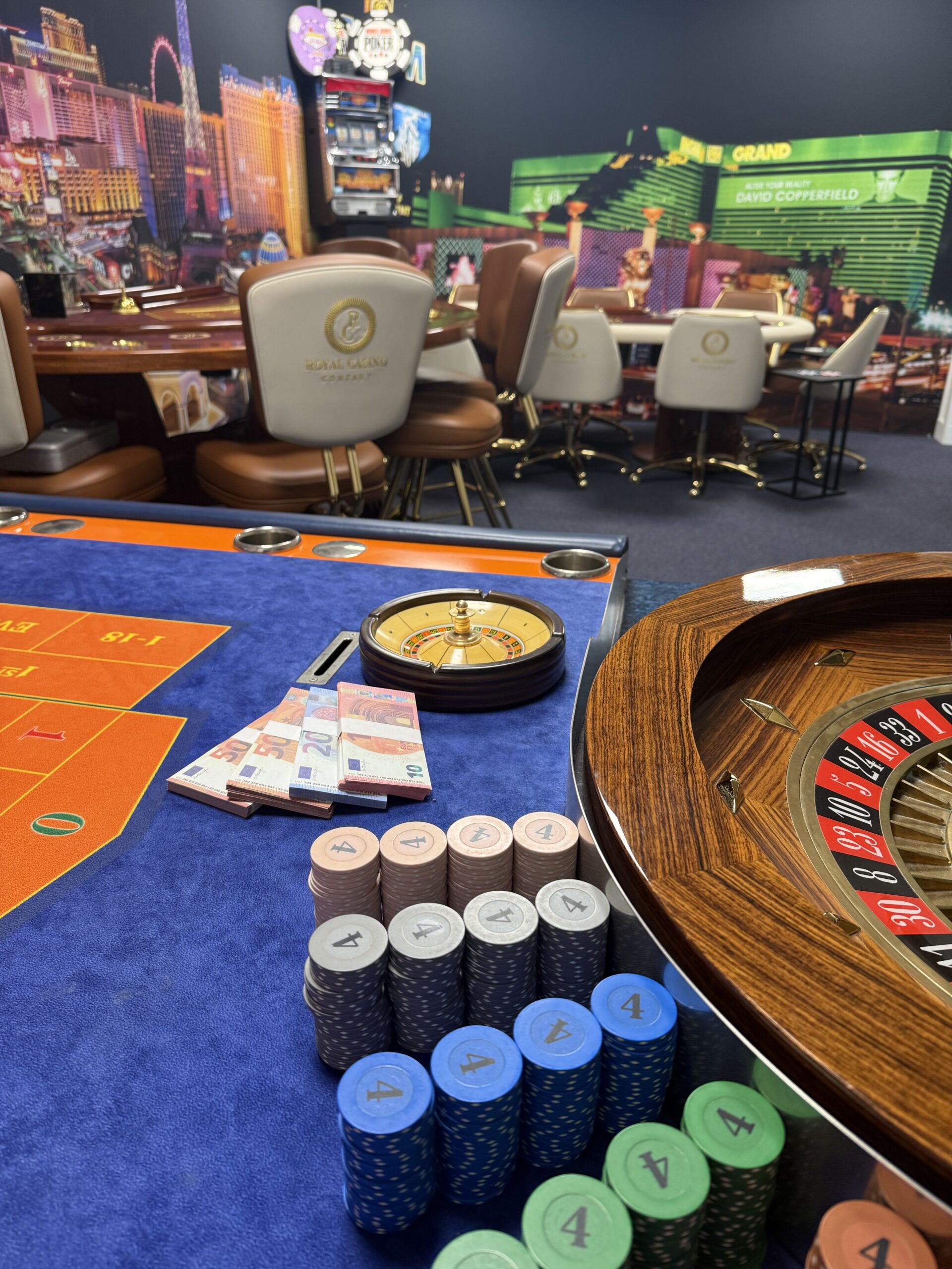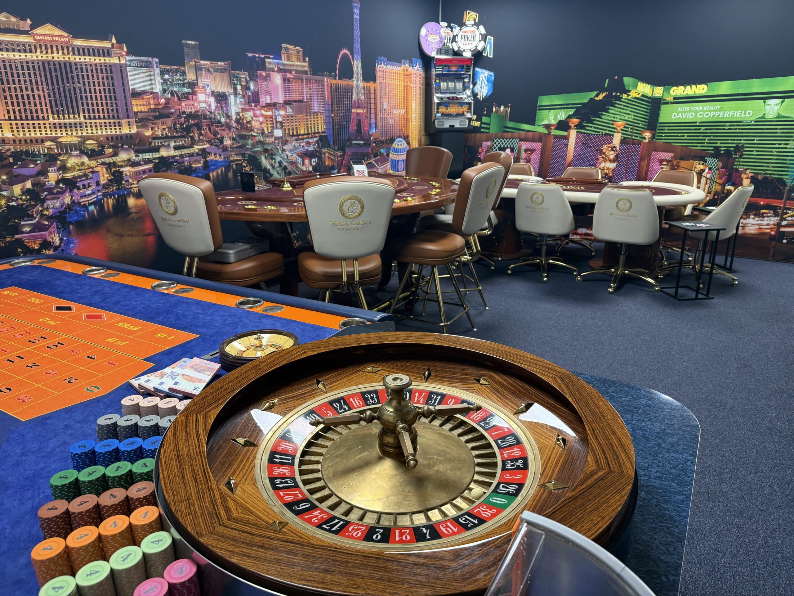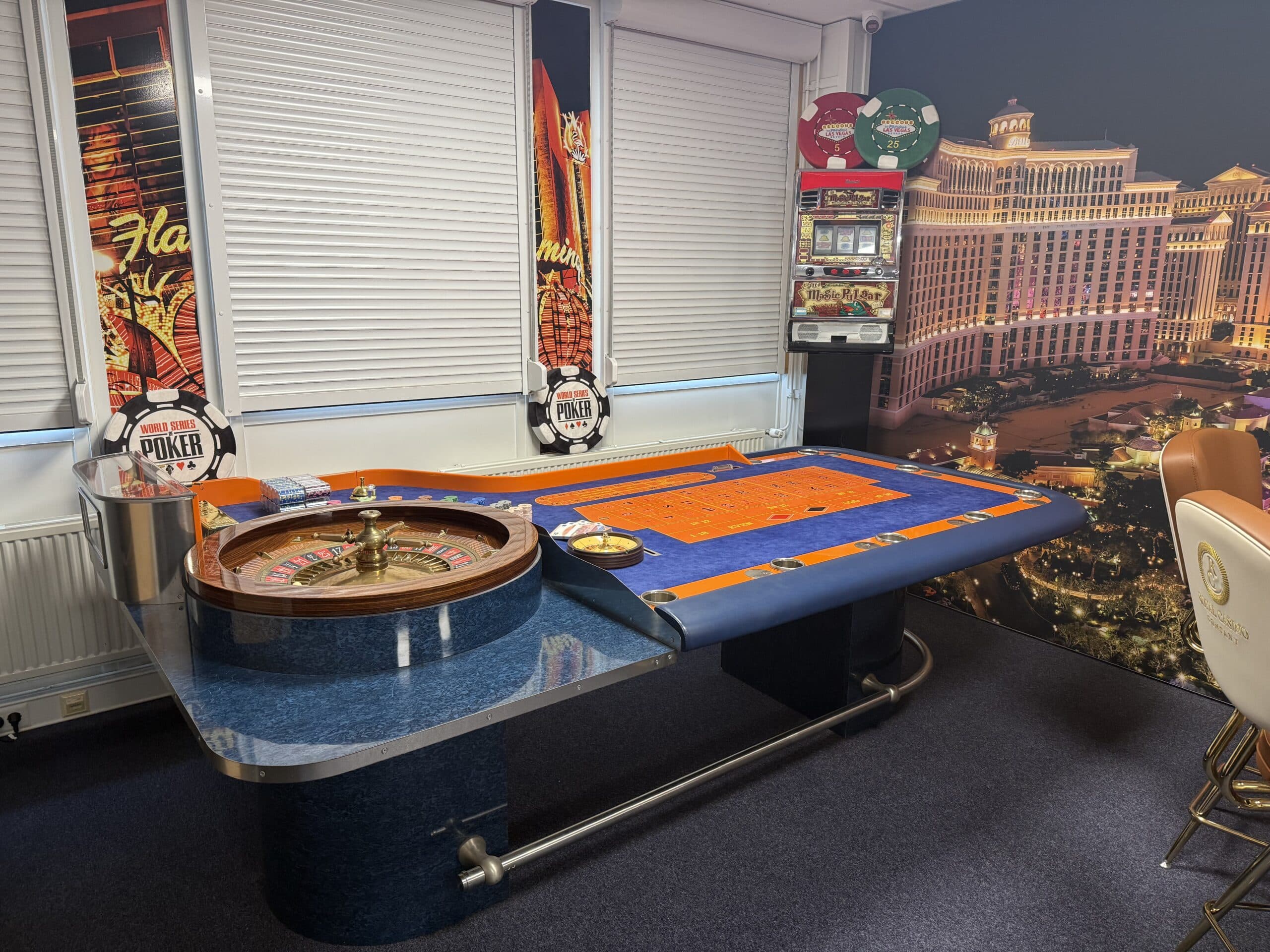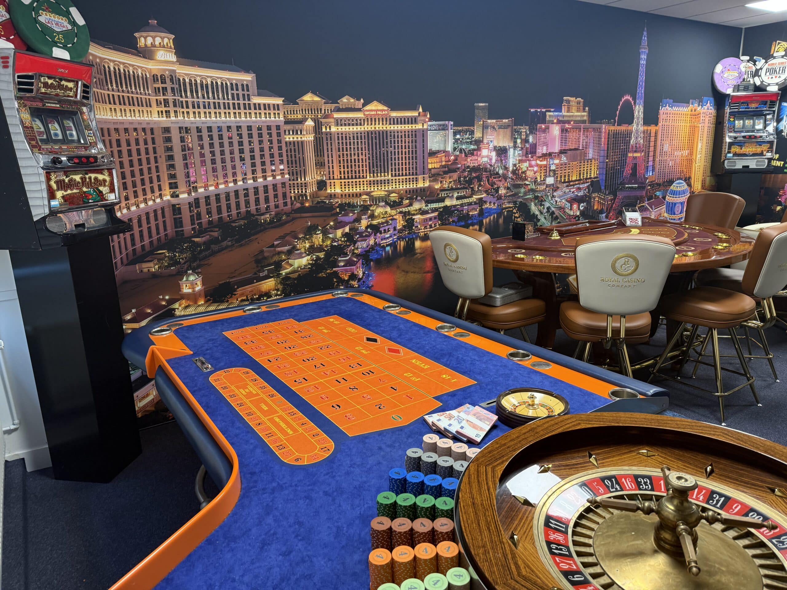 Onze casino-ruimte is volledig ingericht met de meest luxe casinotafels, van een kwaliteit die je normaal gesproken alleen ziet in zeer exclusieve buitenlandse casino’s zoals Monaco. We werken bovendien met echte, originele casinochips, unieke exemplaren die daadwerkelijk afkomstig zijn uit een high-end casino. Hierdoor krijgen onze gasten een ongeëvenaarde, authentieke en zeer luxe casino beleving.