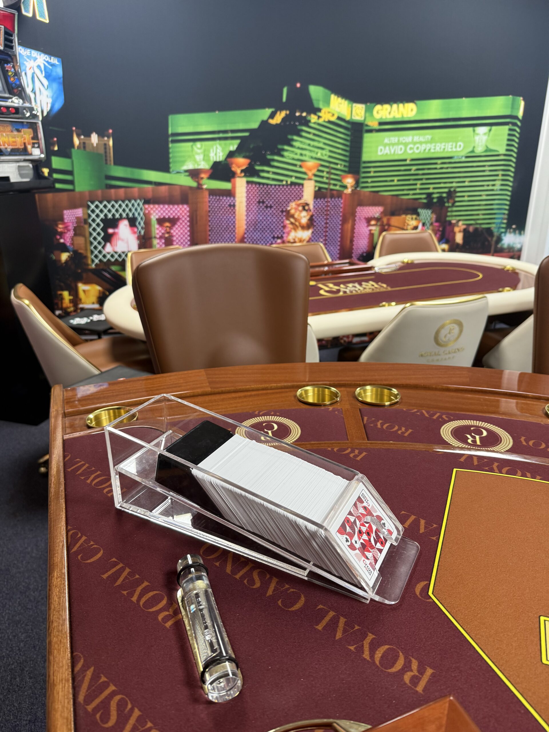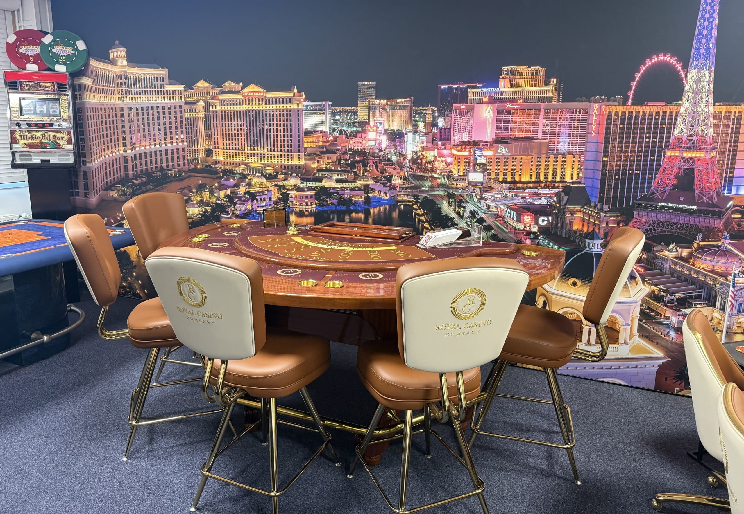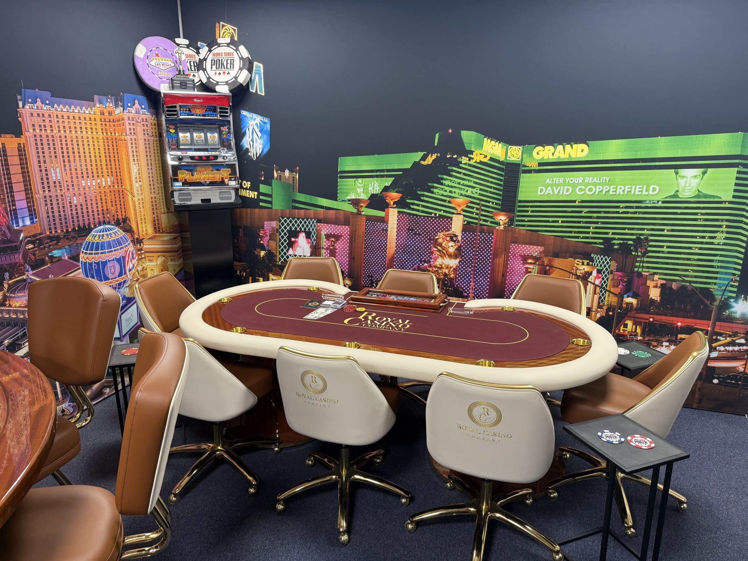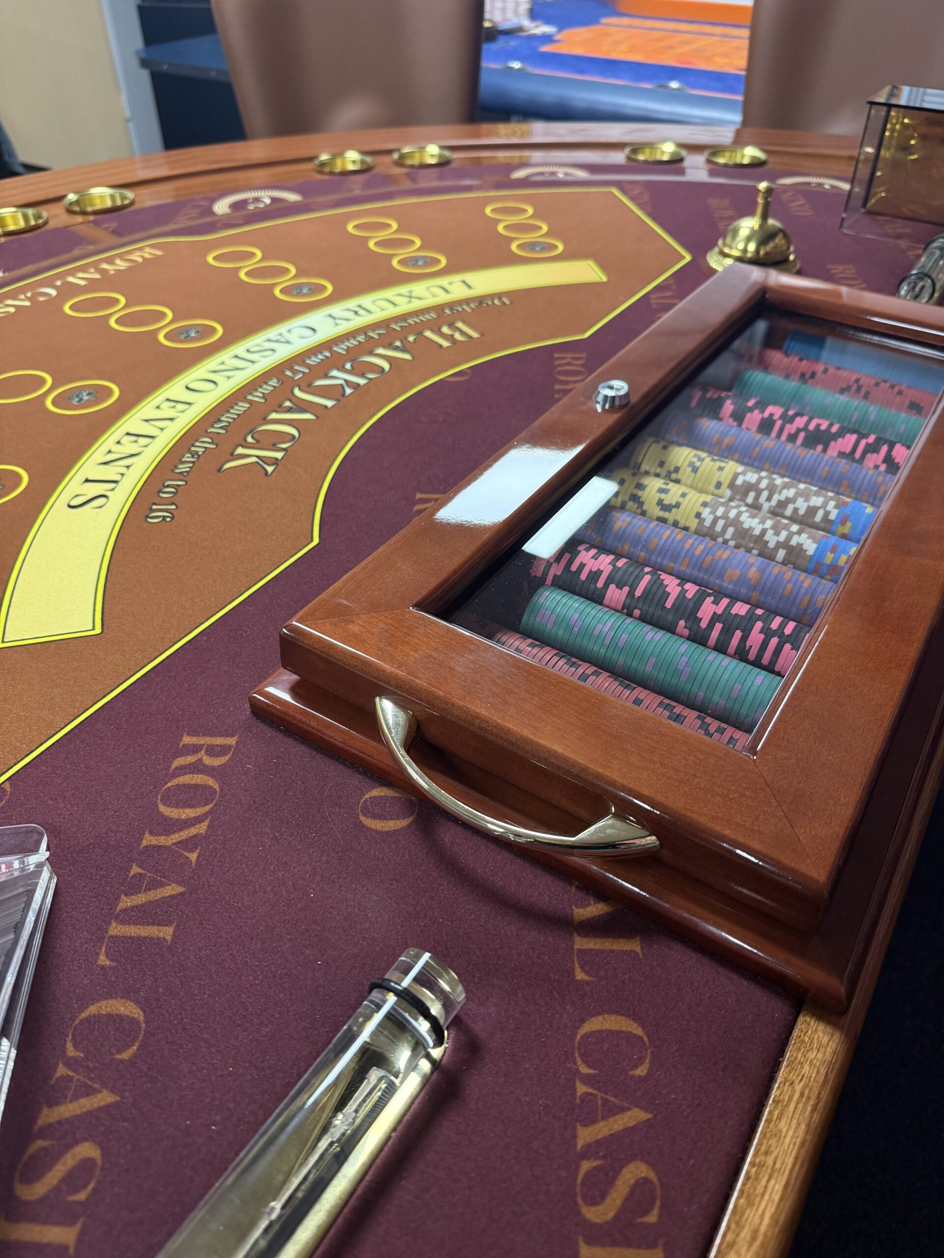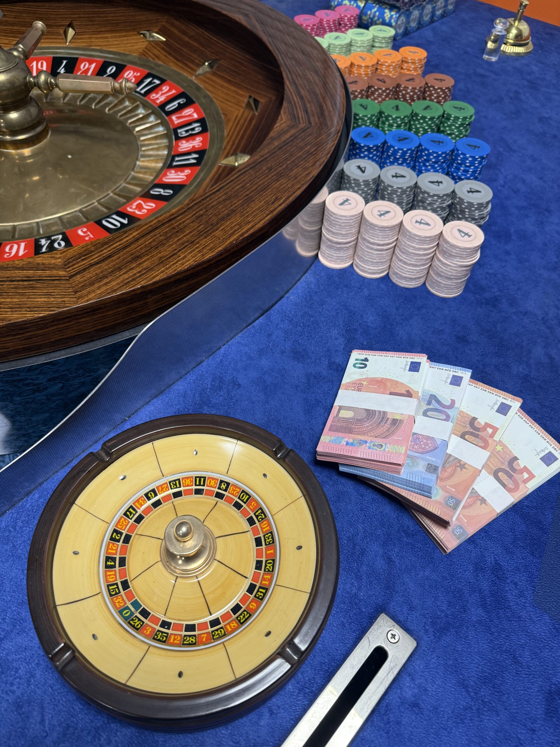 Onze casino-ruimte is volledig ingericht met de meest luxe casinotafels, van een kwaliteit die je normaal gesproken alleen ziet in zeer exclusieve buitenlandse casino’s zoals Monaco. We werken bovendien met echte, originele casinochips, unieke exemplaren die daadwerkelijk afkomstig zijn uit een high-end casino. Hierdoor krijgen onze gasten een ongeëvenaarde, authentieke en zeer luxe casino beleving.