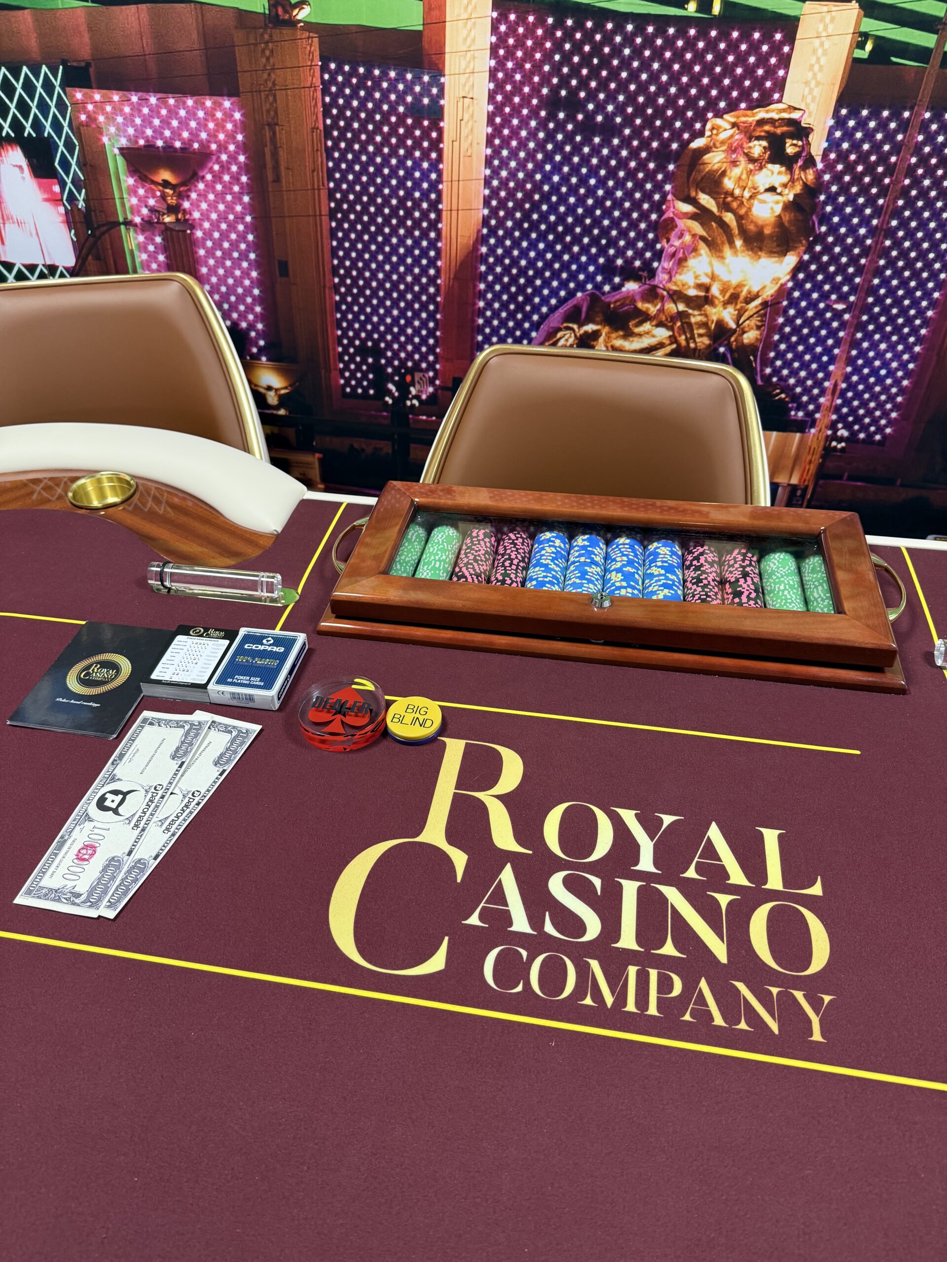 Unser privater Casino-Workshop ist ein vollwertiges Erlebnis mit professionellen Croupiers, luxuriösen Casino-Tischen und exklusiven Casino-Chips, die alle perfekt arrangiert sind.
